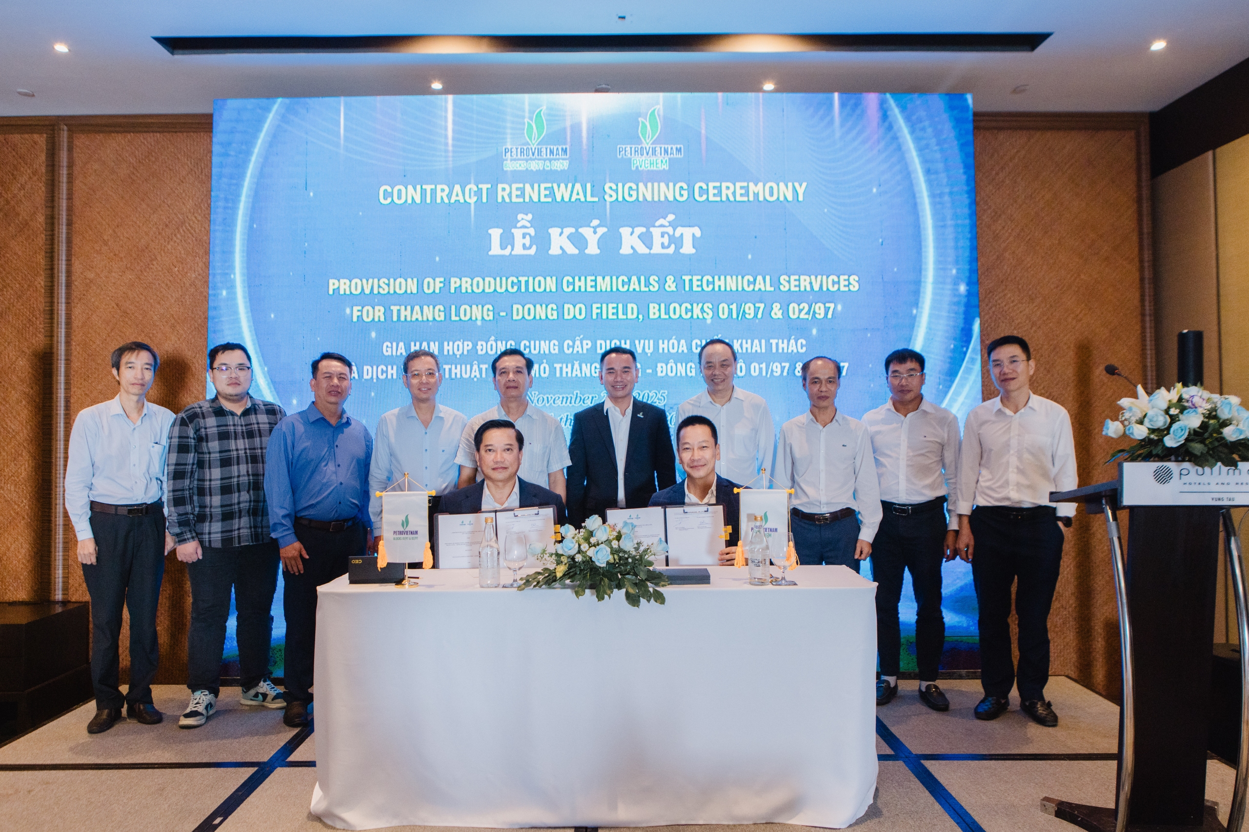 Ngày 21/11/2025, tại TP. Hồ Chí Minh đã diễn ra Lễ ký kết gia hạn Hợp đồng cung cấp Dịch vụ Hóa chất khai thác và hỗ trợ kỹ thuật cho mỏ Thăng Long – Đông Đô, giữa Ban điều hành Lô 01/97&02/97 thuộc Tập đoàn Công nghiệp – Năng lượng Quốc gia Việt Nam và Tổng công ty Hoá chất và Dịch vụ Dầu khí (PVChem). Sự kiện này tiếp tục khẳng định vai trò, uy tín và năng lực cung ứng dịch vụ kỹ thuật chuyên ngành dầu khí của PVChem trong chuỗi hoạt động khai thác ngoài khơi Việt Nam.